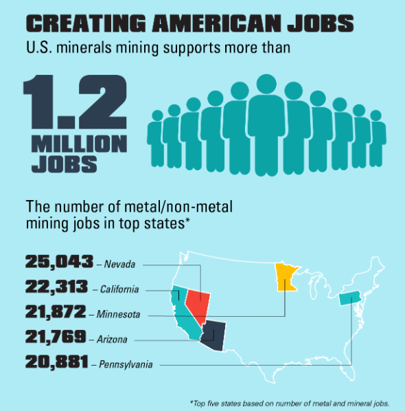 Like Elko, many communities throughout the U.S. benefit from and, in some cases, are sustained by the mining industry. The metals mining industry provides thousands of Americans with well-paying jobs – the industry boasts an average annual salary of $88,000. Additionally, industries that use minerals and metals as raw materials contribute trillions to the GDP—spurring continued job growth. And many of these industries are powering the tools we use every day, as well as the technologies of tomorrow.
