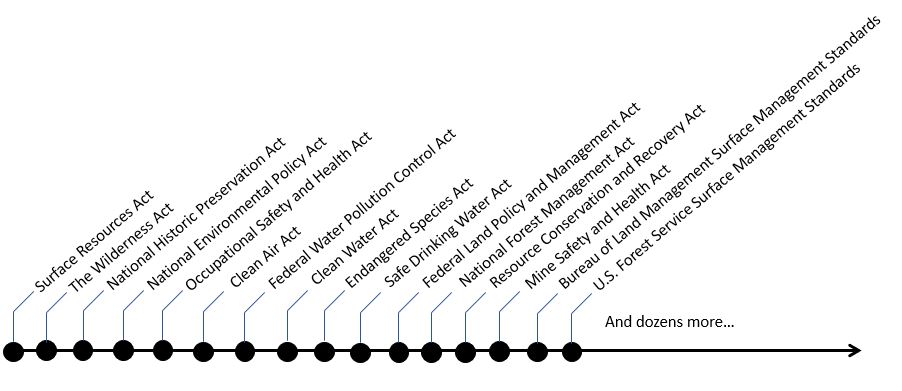 More than three dozen federal environmental laws and regulations govern the U.S. mining industry — in addition to laws at the state and local level.
